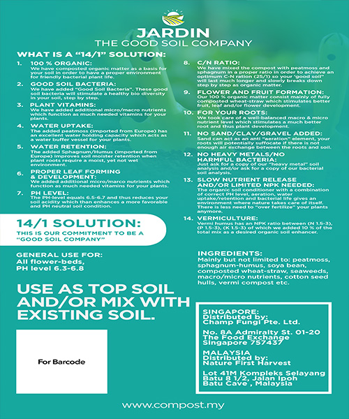 - Good Soil Bacteria: We have added "Good Soil Bacteria". These good soil bacteria will stimulate a healthy bio diversity in your soil, step by step.